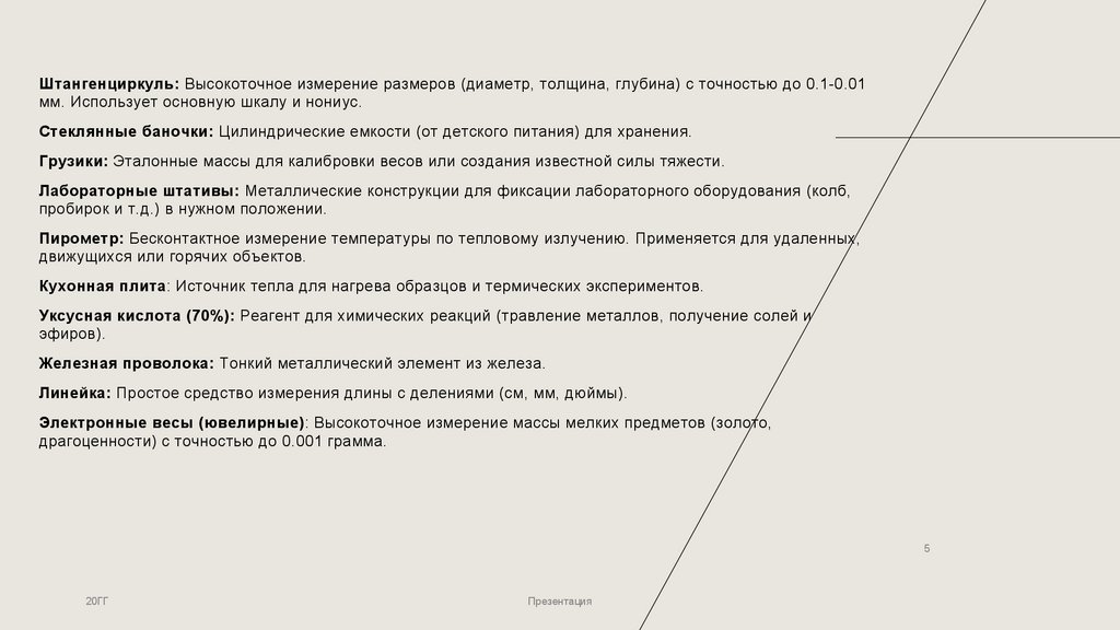 Штангенциркуль: Высокоточное измерение размеров (диаметр, толщина, глубина) с точностью до 0.1-0.01мм. Использует основную шкалу и нониус.