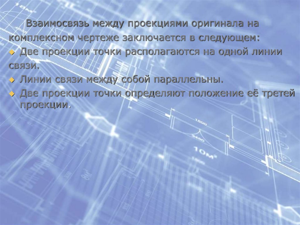 Взаимосвязь между проекциями оригинала накомплексном чертеже заключается в следующем: