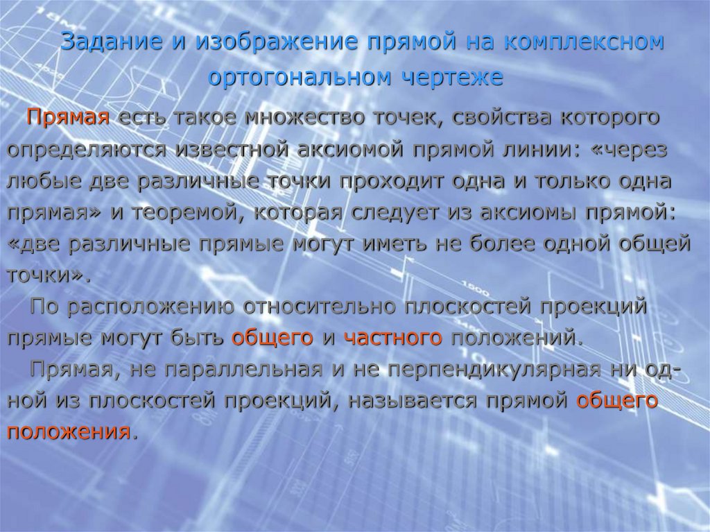 Задание и изображение прямой на комплексномортогональном чертеже