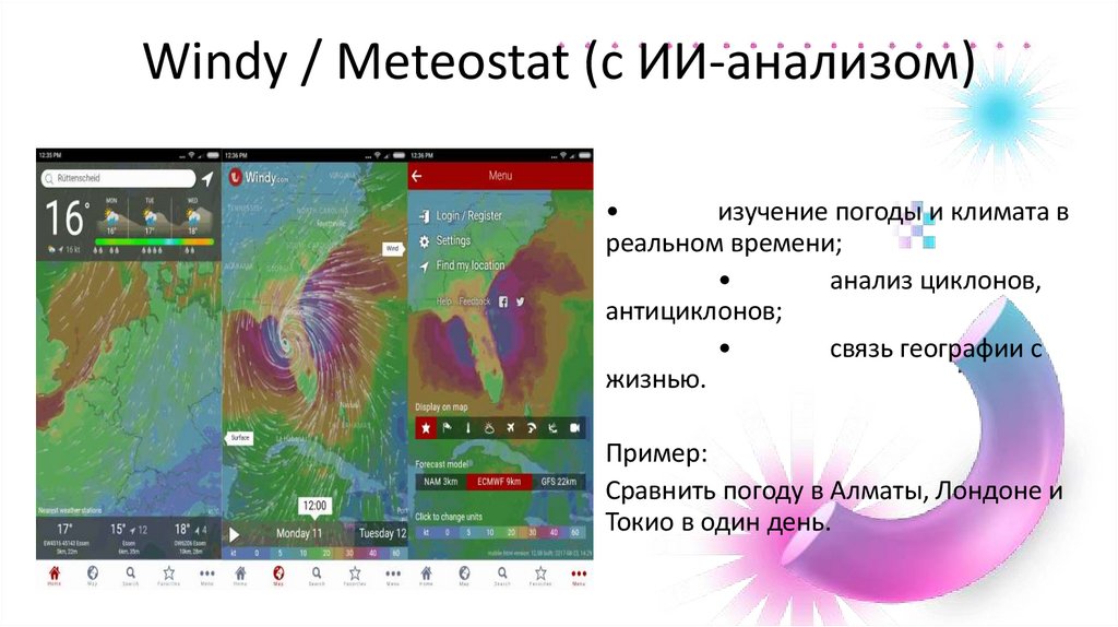 Windy / Meteostat (с ИИ-анализом)изучение погоды и климата в