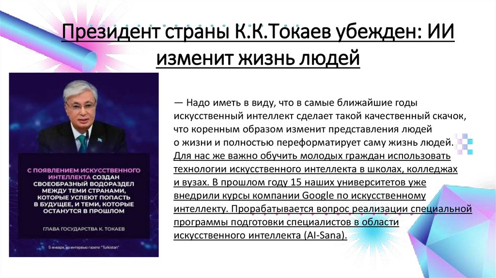 Президент страны К.К.Токаев убежден: ИИизменит жизнь людей
