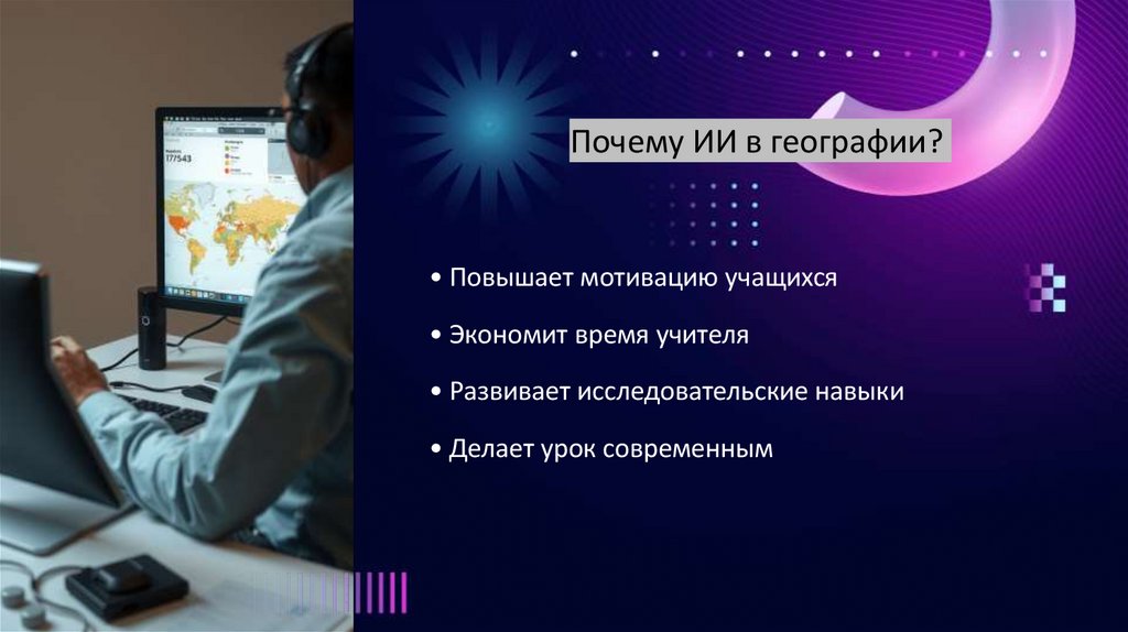 Почему ИИ в географии?• Повышает мотивацию учащихся