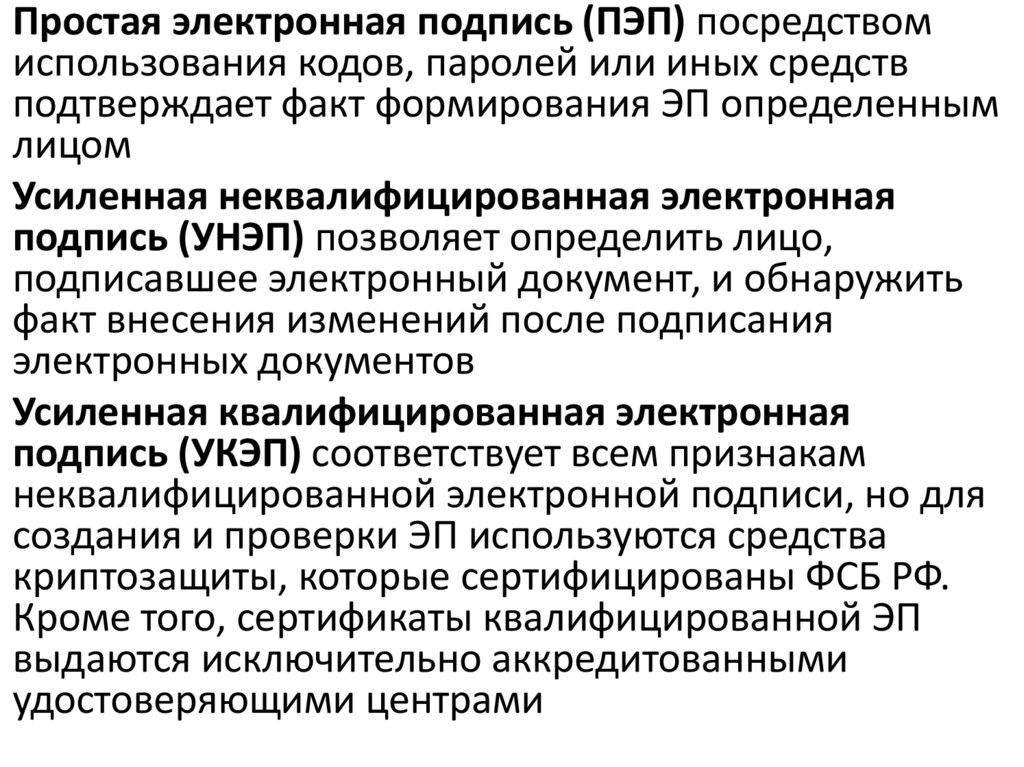 Согласно Федеральному закону №63-ФЗ «Обэлектронной подписи», ЭП делятся на: