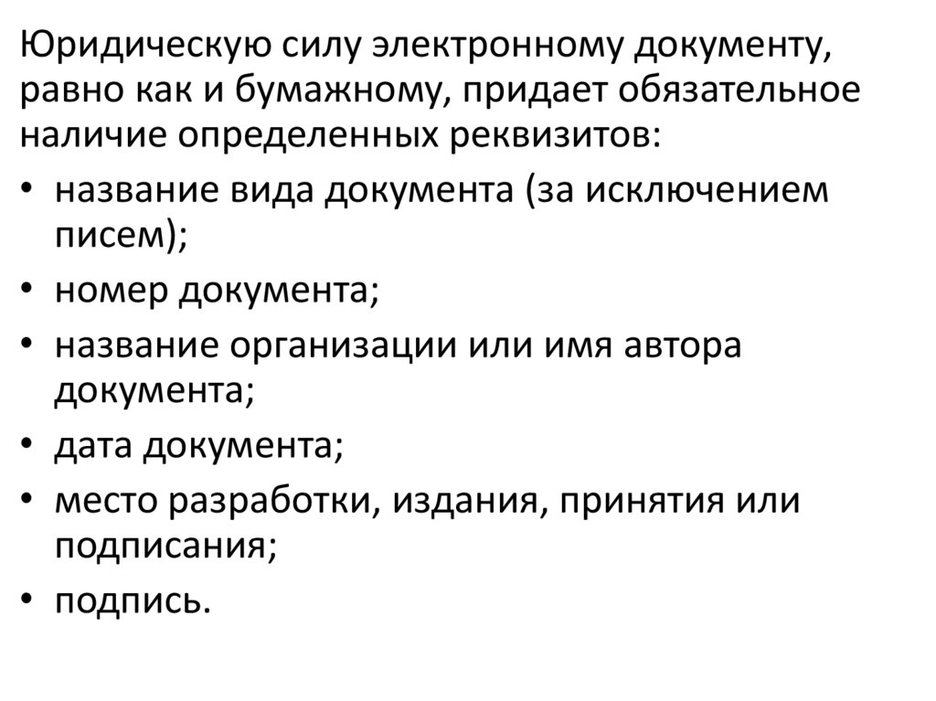 Юридическую силу электронному документу,равно как и бумажному, придает обязательное