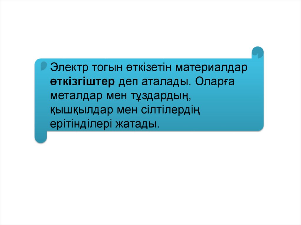 Электр тогын өткізетін материалдарөткізгіштер деп аталады. Оларға