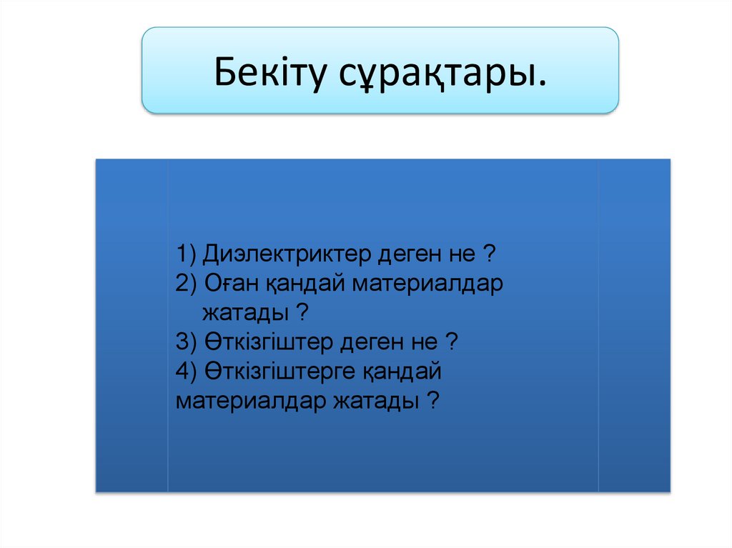 Бекіту сұрақтары.1) Диэлектриктер деген не ?