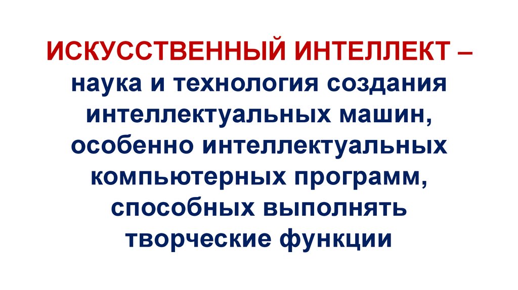 Искусственный интеллект – наука и технология создания интеллектуальных машин