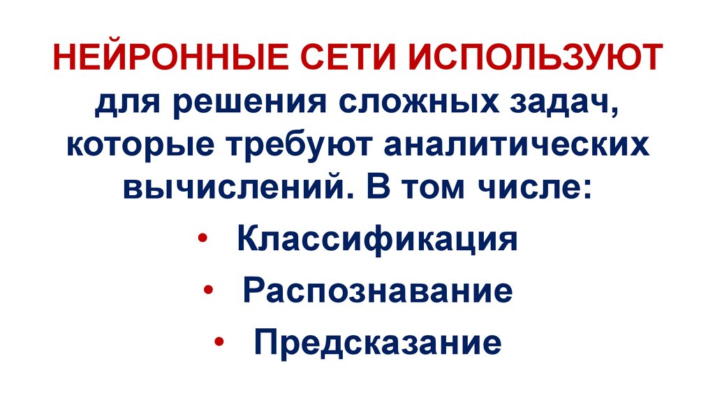 НЕЙРОННЫЕ СЕТИ ИСПОЛЬЗУЮТдля решения сложных задач,