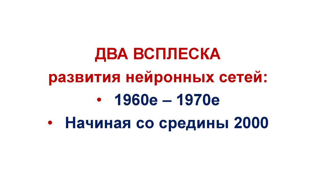 ДВА ВСПЛЕСКАразвития нейронных сетей: