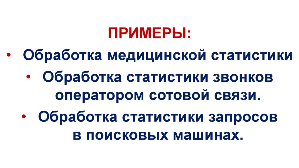 ПРИМЕРЫ:• Обработка медицинской статистики
