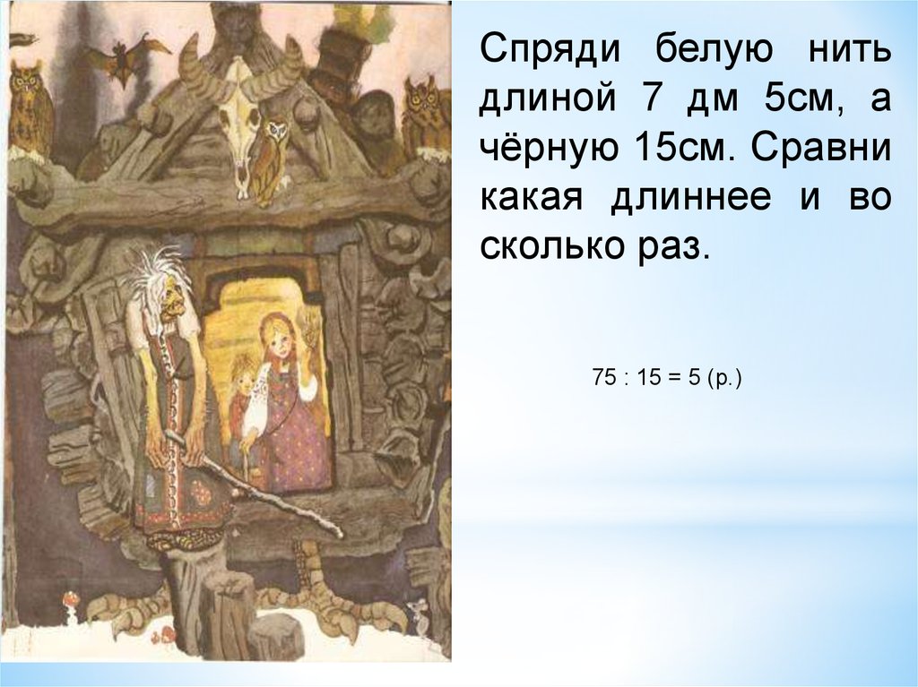 Спряди белую нитьдлиной 7 дм 5см, а