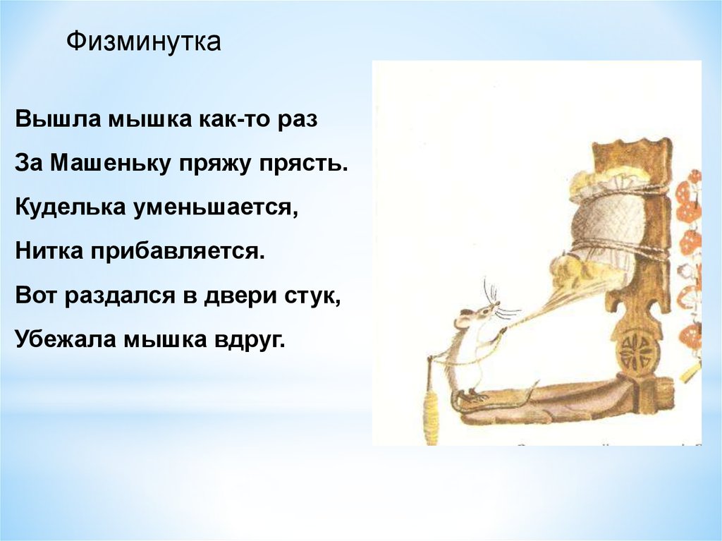 ФизминуткаВышла мышка как-то раз