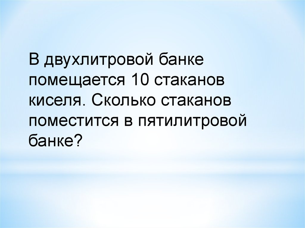 В двухлитровой банкепомещается 10 стаканов