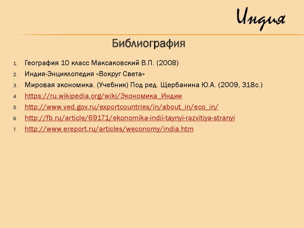 Тема: Экономика Индии.