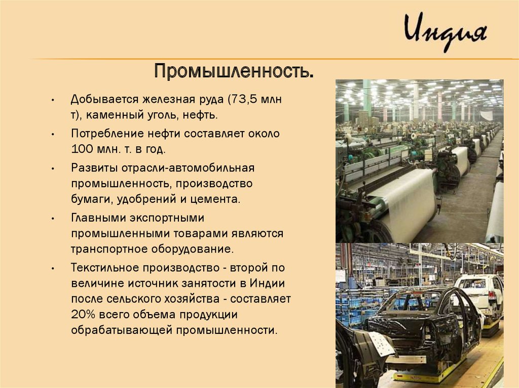 Индия — развивающаясяиндустриальная страна с развитой
