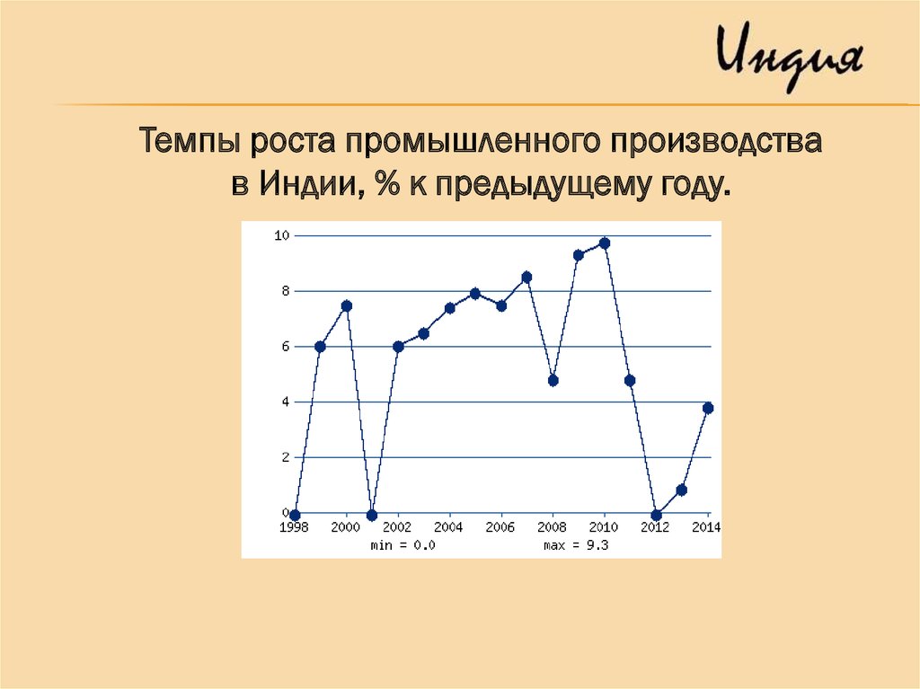 Темпы роста промышленного производствав Индии, % к предыдущему году.