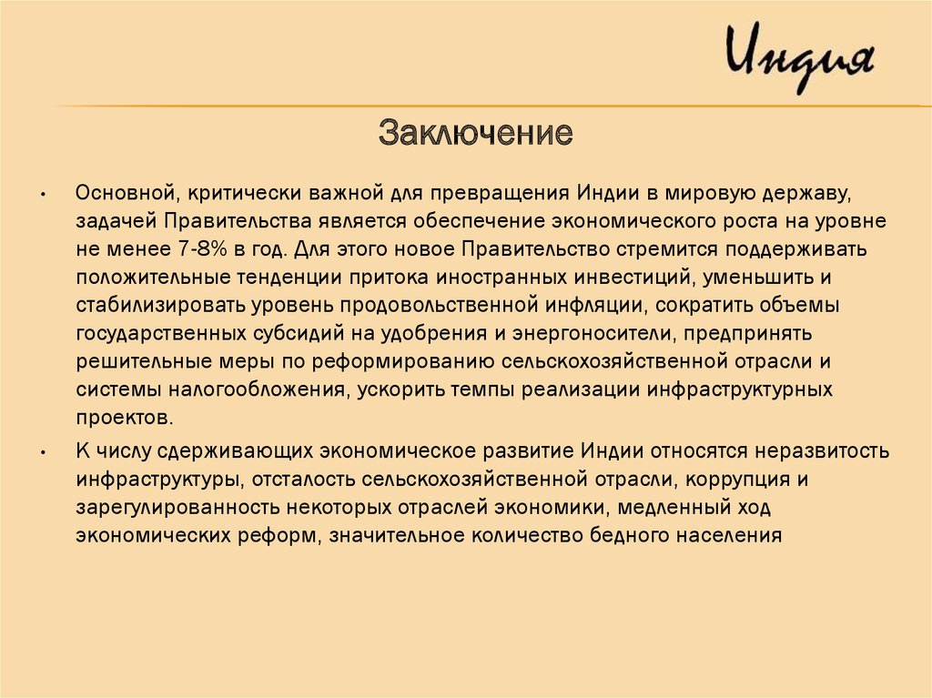 ЗаключениеОсновной, критически важной для превращения Индии в мировую державу,