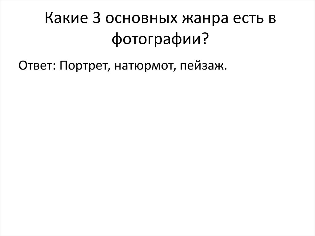 1. Какие 3 основных жанра есть в фотографии?