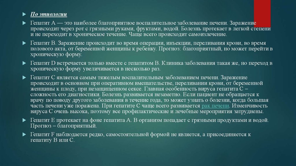 По этиологииГепатит А — это наиболее благоприятное воспалительное заболевание печени. Заражение
