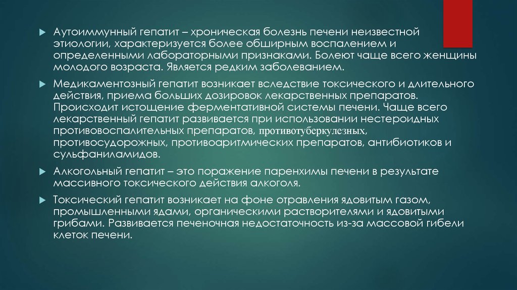 Медикаментозный гепатит возникает вследствие токсического и длительного