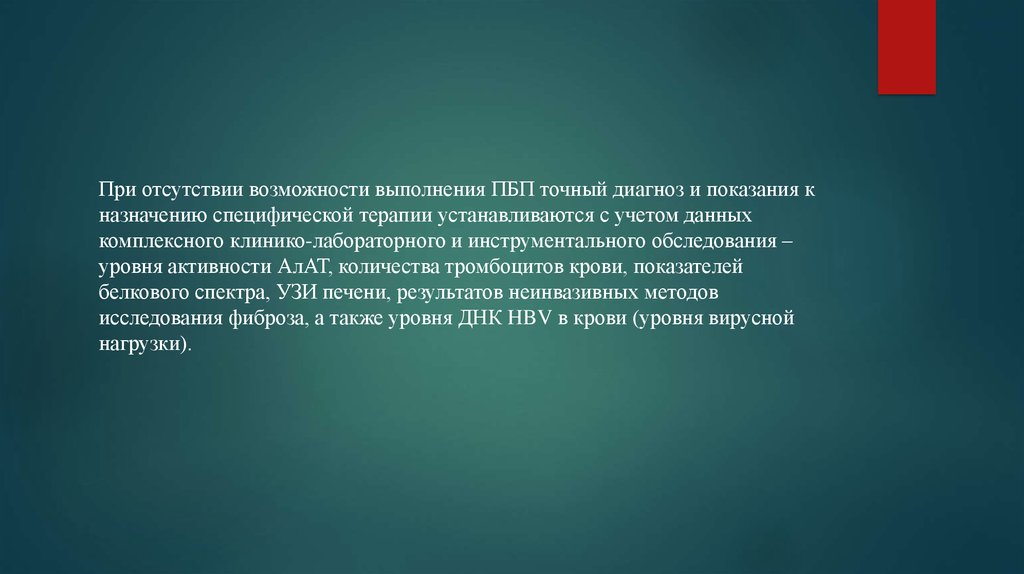 При отсутствии возможности выполнения ПБП точный диагноз и показания кназначению специфической терапии устанавливаются с учетом данных