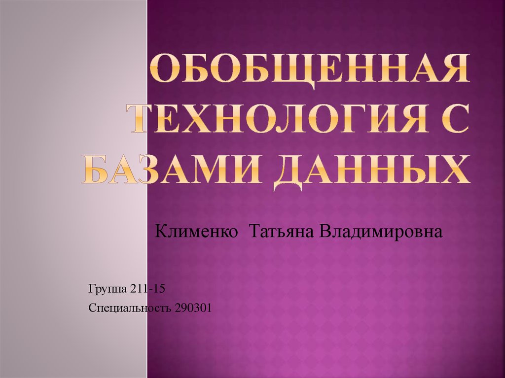 Клименко Татьяна ВладимировнаГруппа 211-15