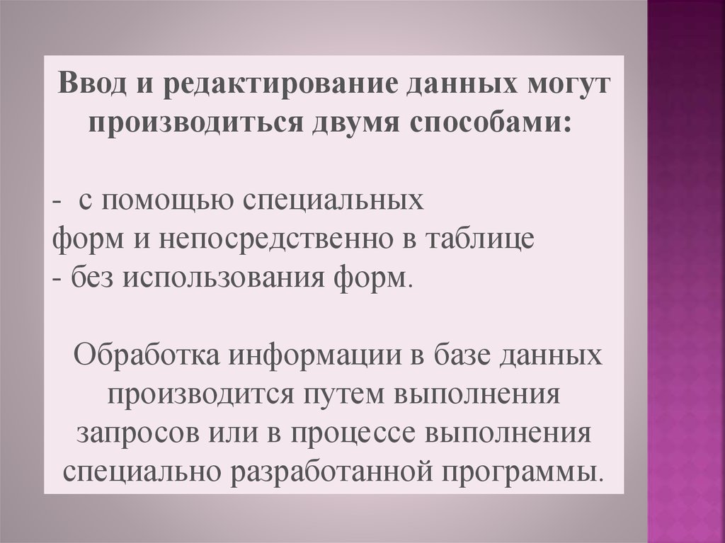 Ввод и редактирование данных могутпроизводиться двумя способами: