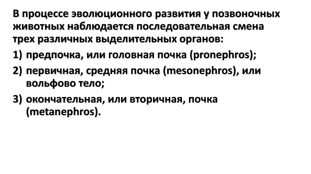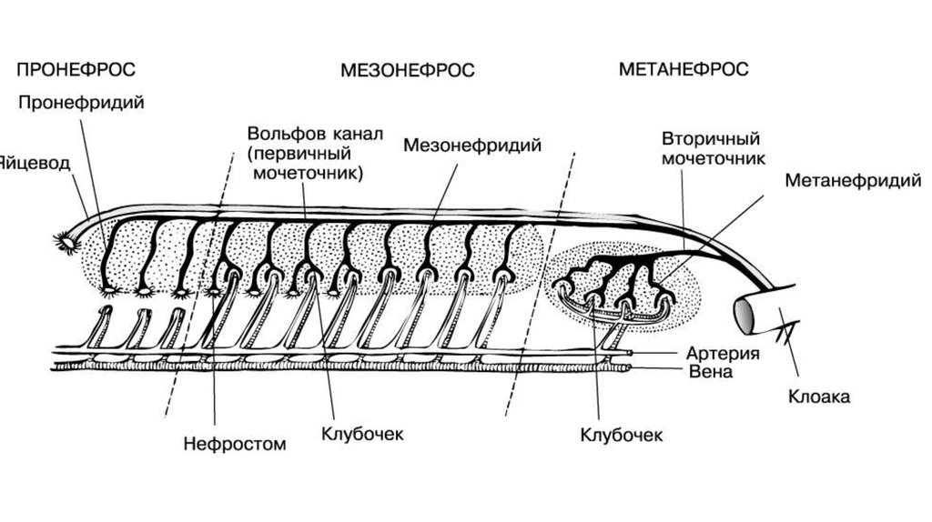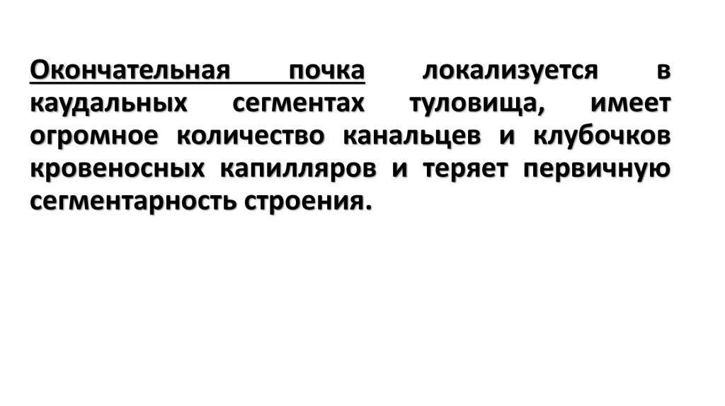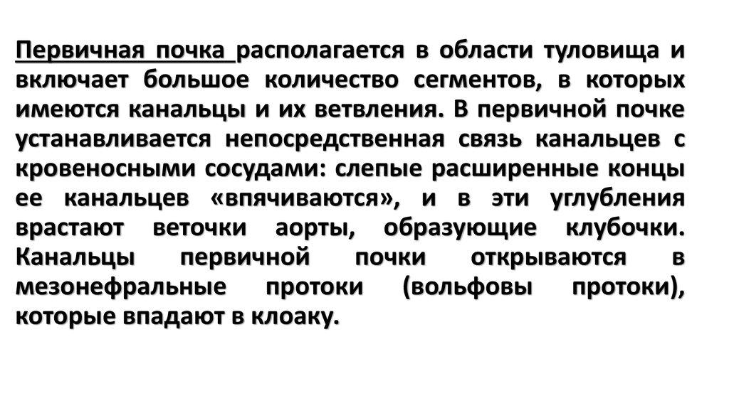 Первичная почка располагается в области туловища ивключает большое количество сегментов, в которых