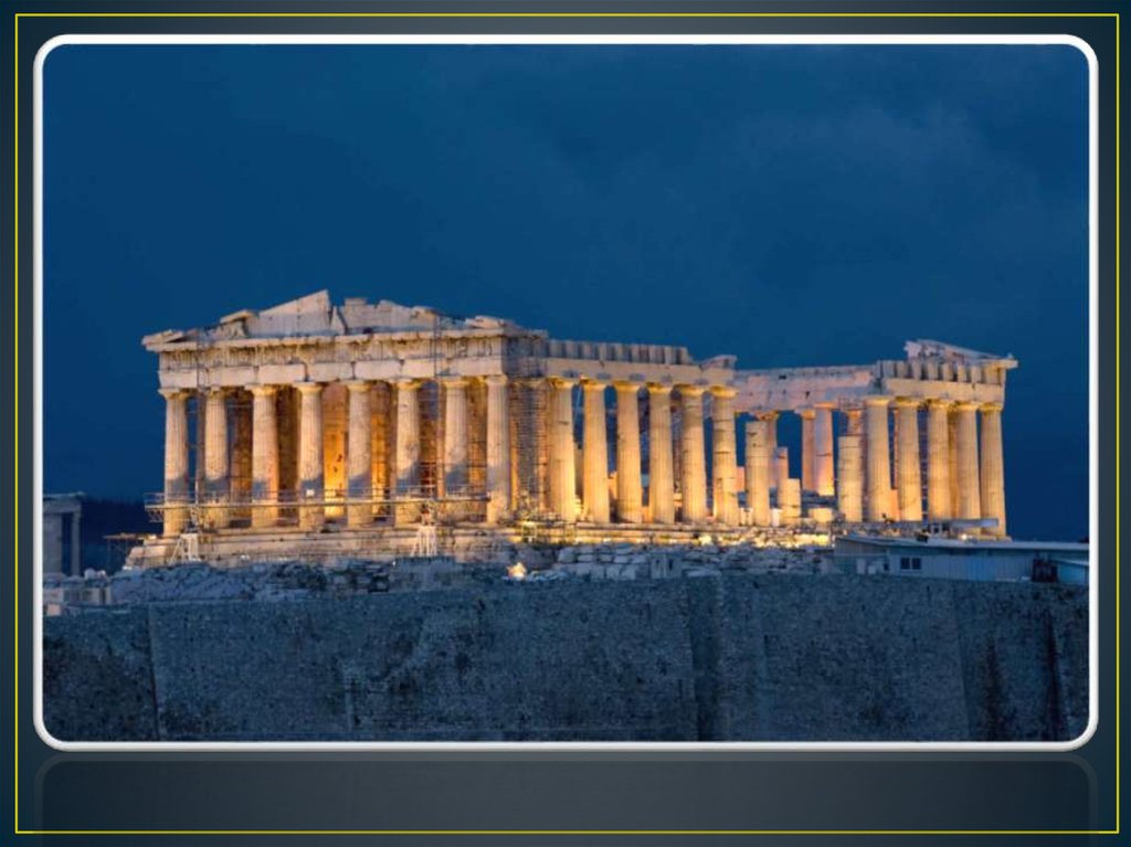 • Парфенон— белоснежный храм, который возвышался надморем и землей был построен как храм богини Афины,