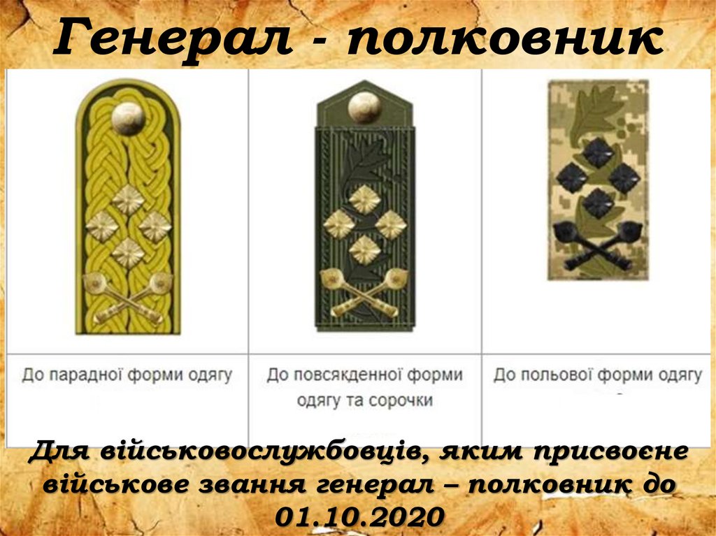 Генерал - полковникДля військовослужбовців, яким присвоєне