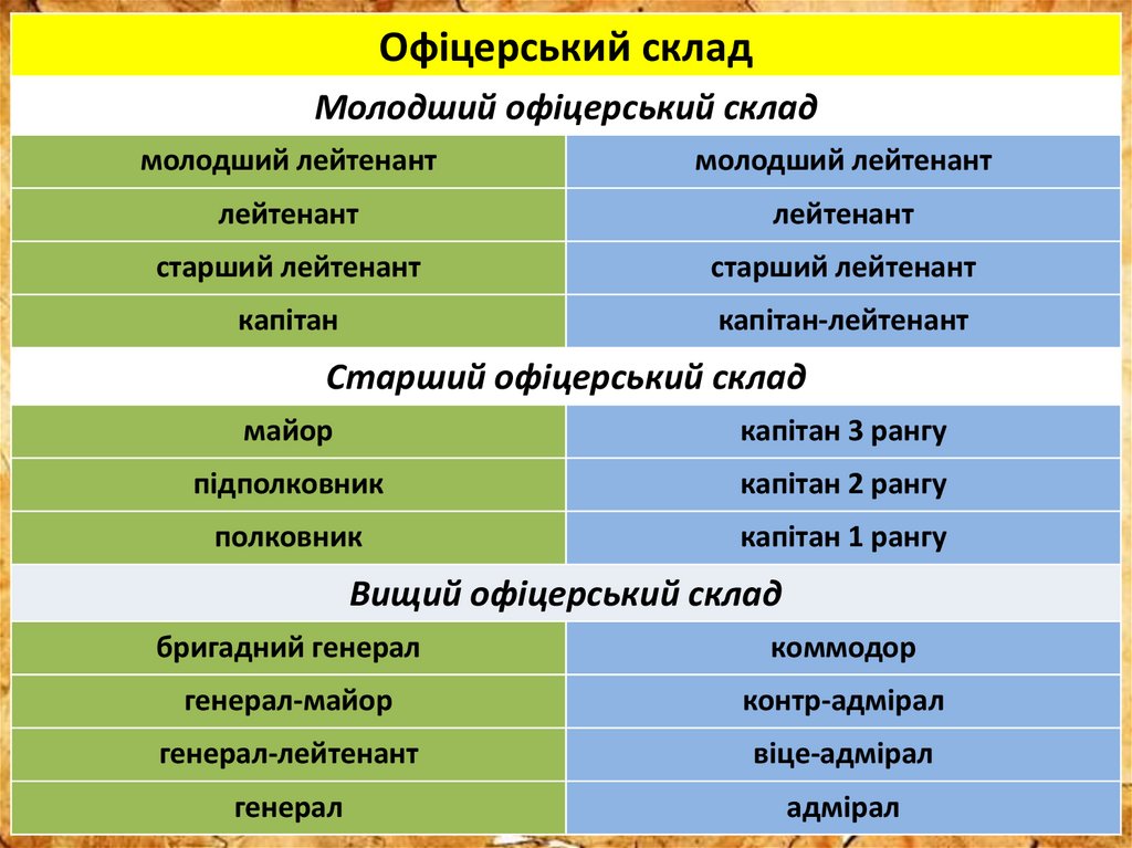 1. Самостійно закріпити знання щодо молодшого,старшого та вищого офіцерського складу.