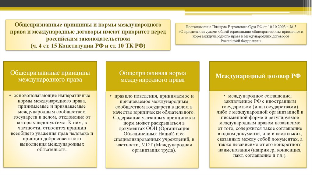 система включают в свой состав довольно большой массив международныхправовых актов о труде, которые имеют приоритет перед российскими актами;