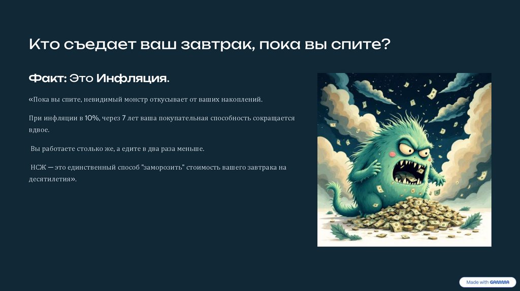 «Пока вы спите, невидимый монстр откусывает от ваших накоплений.