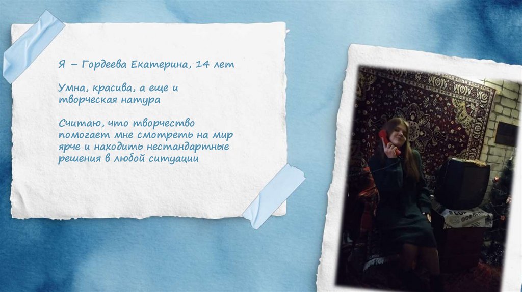 Я – Гордеева Екатерина, 14 летУмна, красива, а еще и
