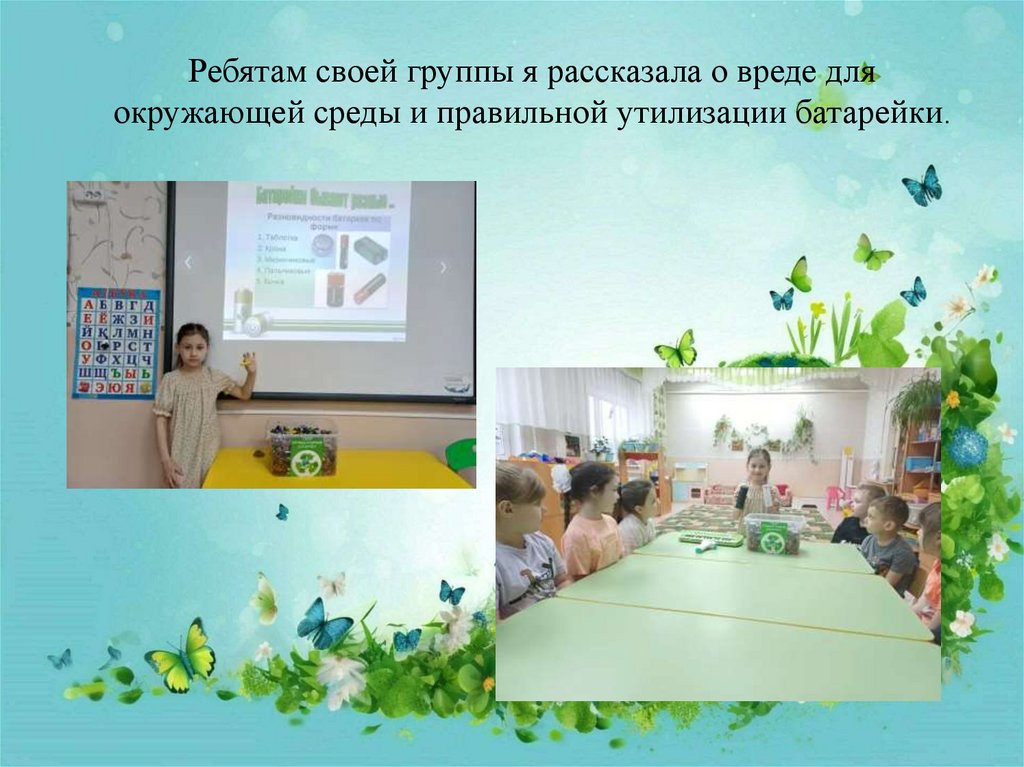 Ребятам своей группы я рассказала о вреде дляокружающей среды и правильной утилизации батарейки.