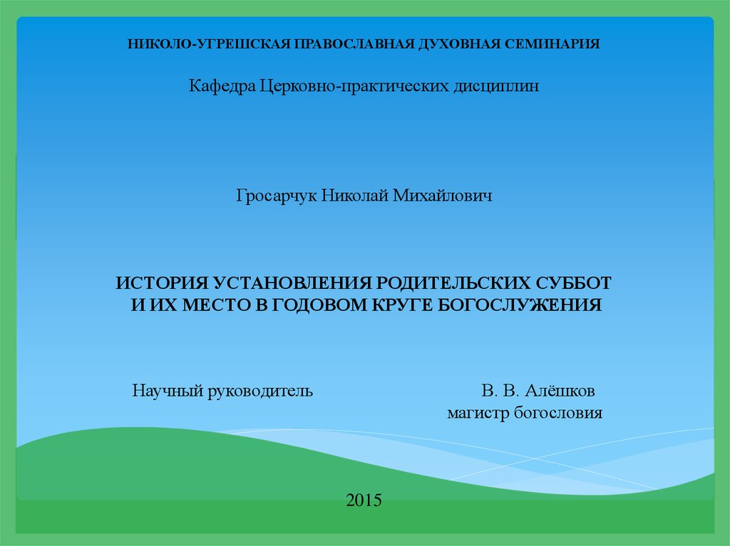 НИКОЛО-УГРЕШСКАЯ ПРАВОСЛАВНАЯ ДУХОВНАЯ СЕМИНАРИЯКафедра Церковно-практических дисциплин