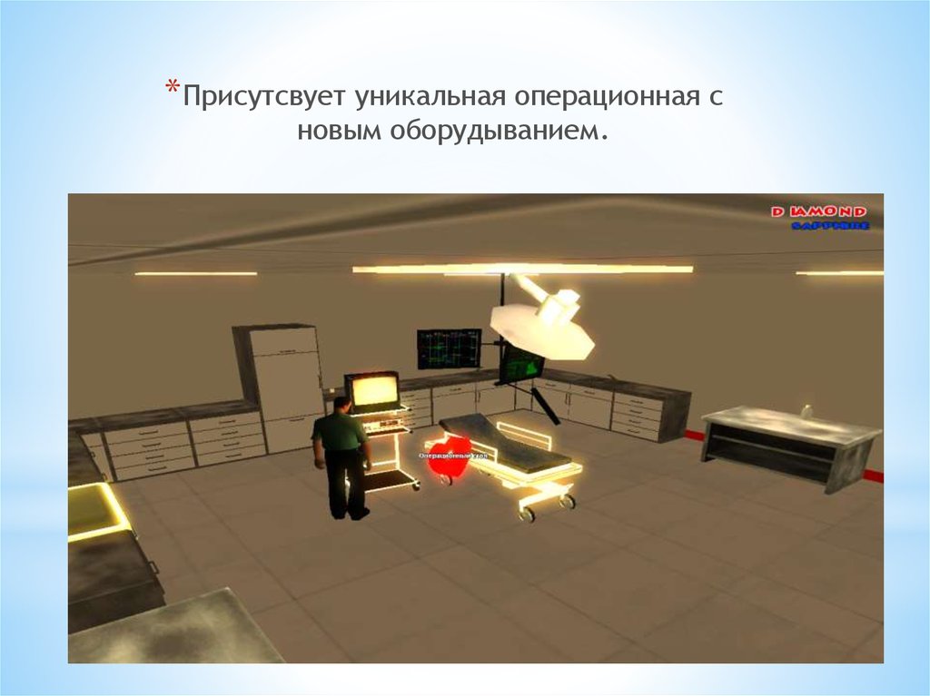* Присутсвует уникальная операционная сновым оборудыванием.