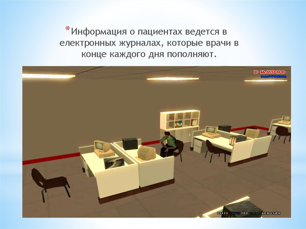 * Информация о пациентах ведется велектронных журналах, которые врачи в