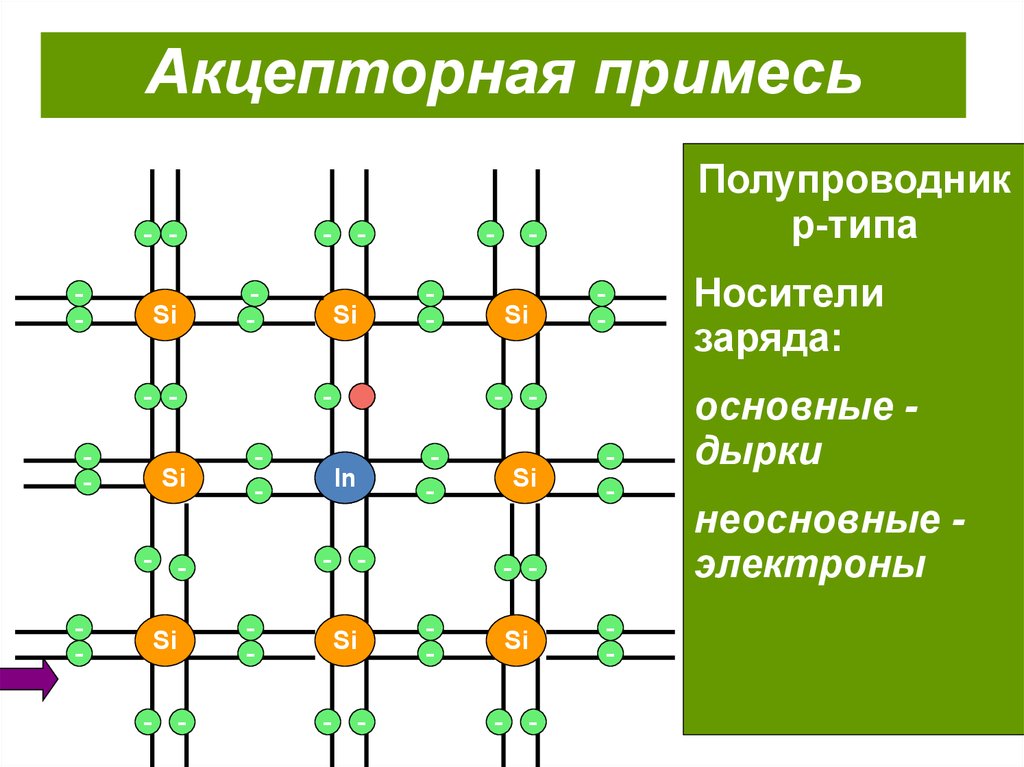 Виды примеснойпроводимости: акцепторная (p- типа )