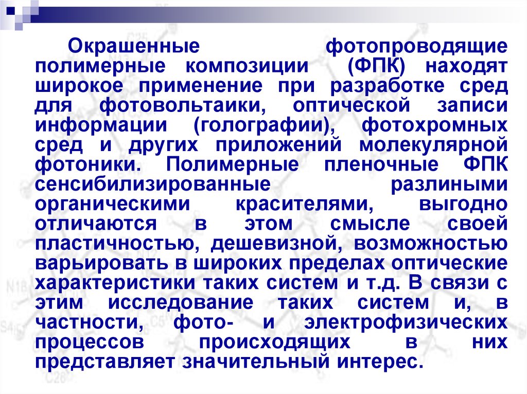 23. Голографические регистрирующие среды на основе пленок ОГК с добавками стильбенового красителя