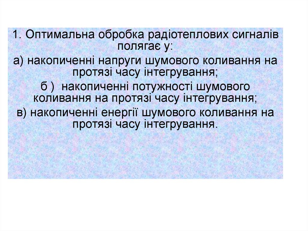 1. Оптимальна обробка радіотеплових сигналівполягає у: