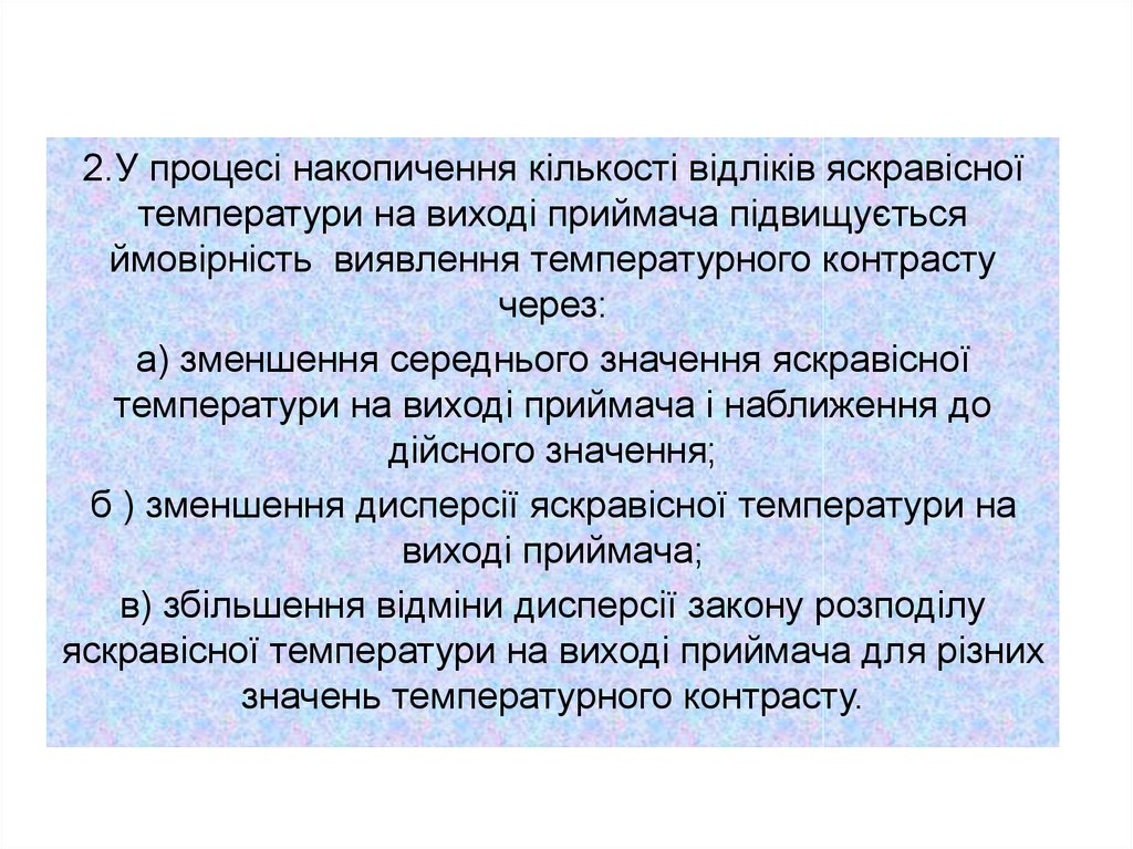 2.У процесі накопичення кількості відліків яскравісноїтемператури на виході приймача підвищується