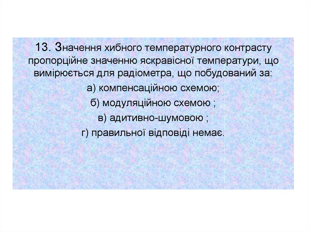 13. Значення хибного температурного контраступропорційне значенню яскравісної температури, що