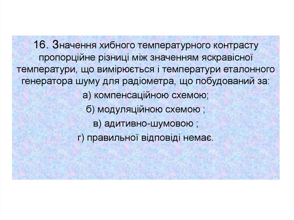 16. Значення хибного температурного контраступропорційне різниці між значенням яскравісної
