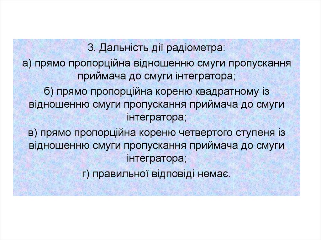 3. Дальність дії радіометра:а) прямо пропорційна відношенню смуги пропускання