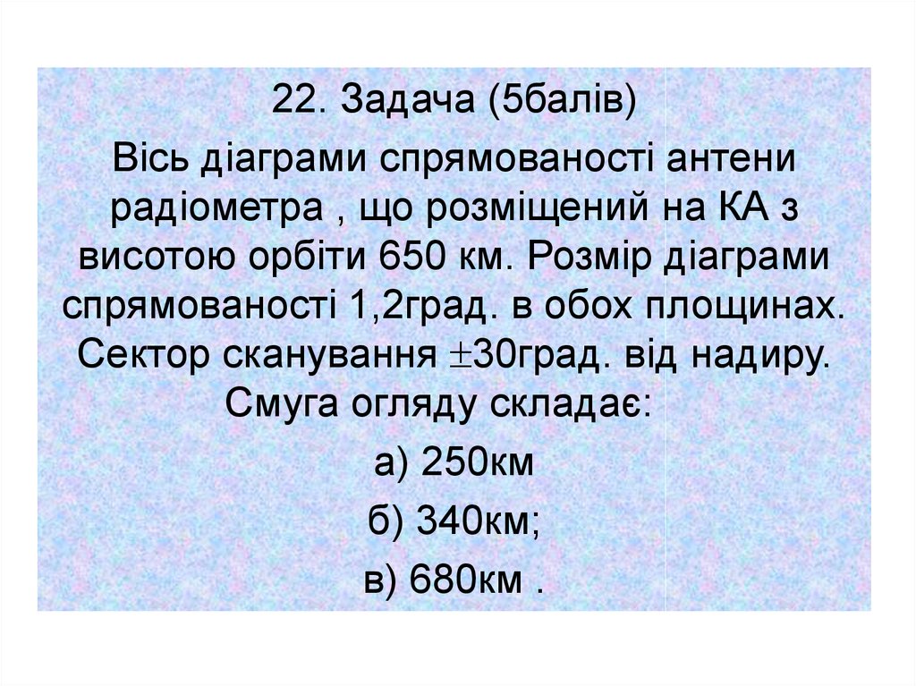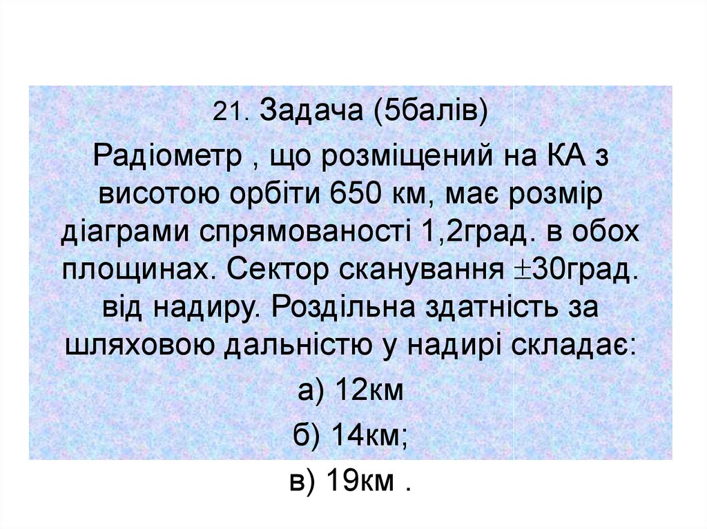 21. Задача (5балів)Радіометр , що розміщений на КА з