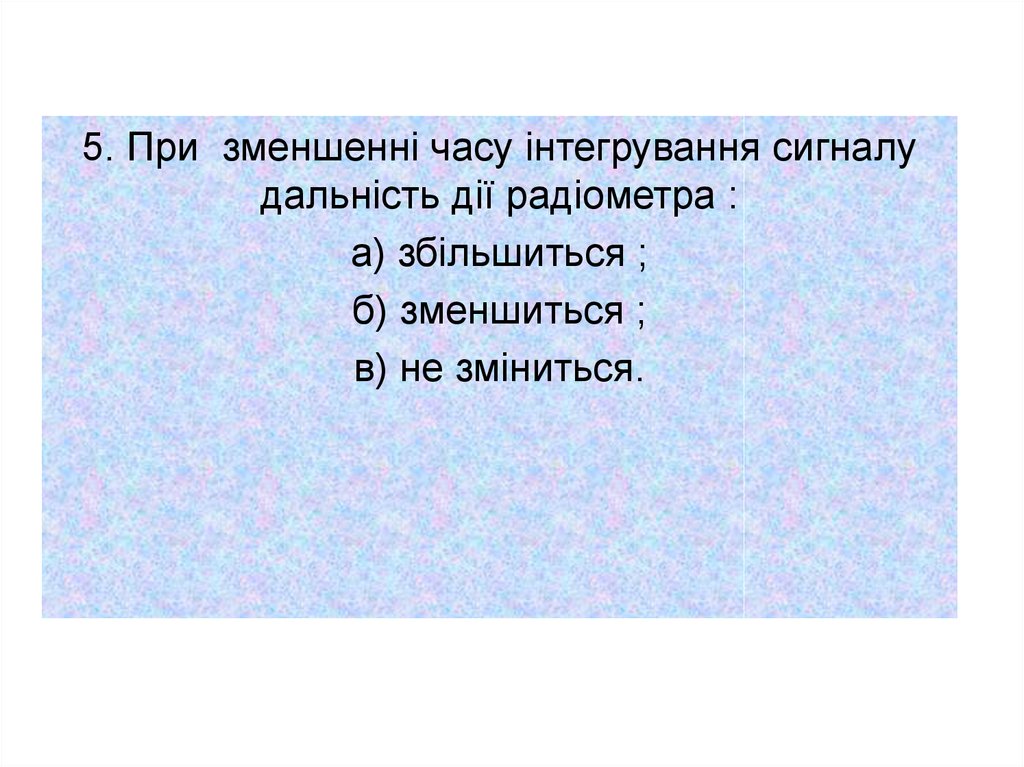 5. При зменшенні часу інтегрування сигналудальність дії радіометра :