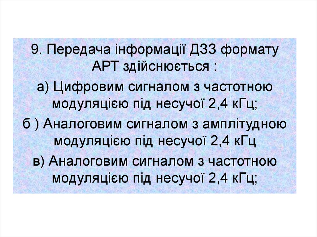 9. Передача інформації ДЗЗ форматуАРТ здійснюється :