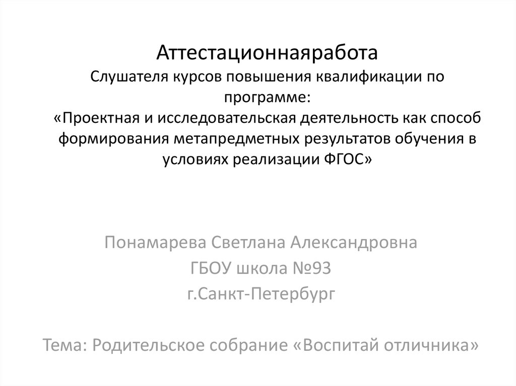 1. Аттестационнаяработа Слушателя курсов повышения квалификации по программе: «Проектная и исследовательская деятельность как способ форм