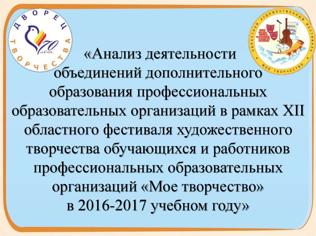 Анализ деятельности объединений дополнительного образования в рамках XII областного фестиваля художественного творчества